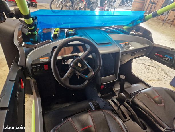 DIRECTION ASSISTÉE multi-modes Amortisseurs à GAZ RÉGLABLE Différentiel AVANT avec blocage JANTES ALUMINIUM 14 POUCES + BEADLOCK Tableau de bord digitale + écran central 10″ SIÈGES BAQUETS harnais 4 points Feux LED Treuil 2T